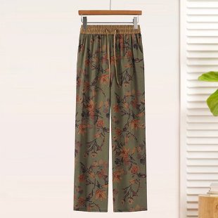 百搭顯瘦女士寬鬆直筒褲 精美印花 氣質優雅 時尚休閒
