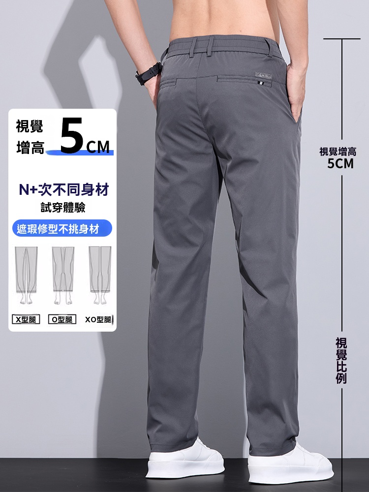 【視覺增高5cm】雙重彈力腰頭不勒肚腩 膝蓋立體剪裁活動無束縛 商務休閒兩用設計 一條褲子穿出三種風格