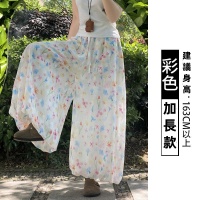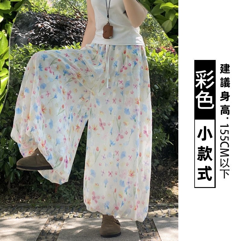 2025新款彩色花苞闊腿褲 夏季薄高腰垂感 直筒休閒冰絲裙褲