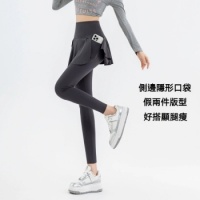 台灣直營 秋冬款假兩件高腰瑜伽裙褲 側邊口袋鯊魚裙褲 精選優質布料,柔軟舒適 速乾透氣 外穿也不會尷尬