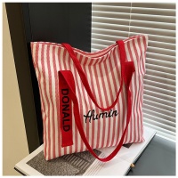 【2025新款】條紋大容量帆布包 加厚加大 經典高級 自帶隱藏式拉鏈 內含拉鏈小夾層 上課通勤手提托特包