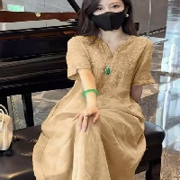 V領刺繡連身裙,柔軟舒適,不挑身材,選用優質布料,上身柔軟又親膚。精緻的刺繡工藝,在細節上彰顯你的優雅氣質。