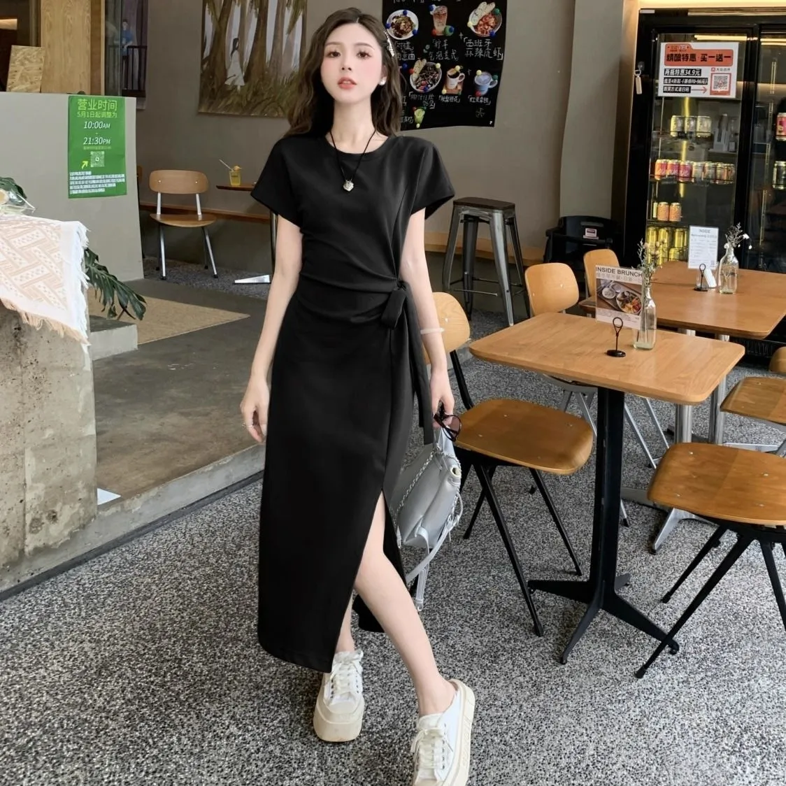女裝夏季新款綁帶短袖時尚連衣裙