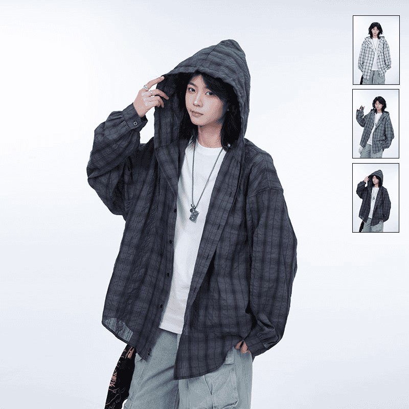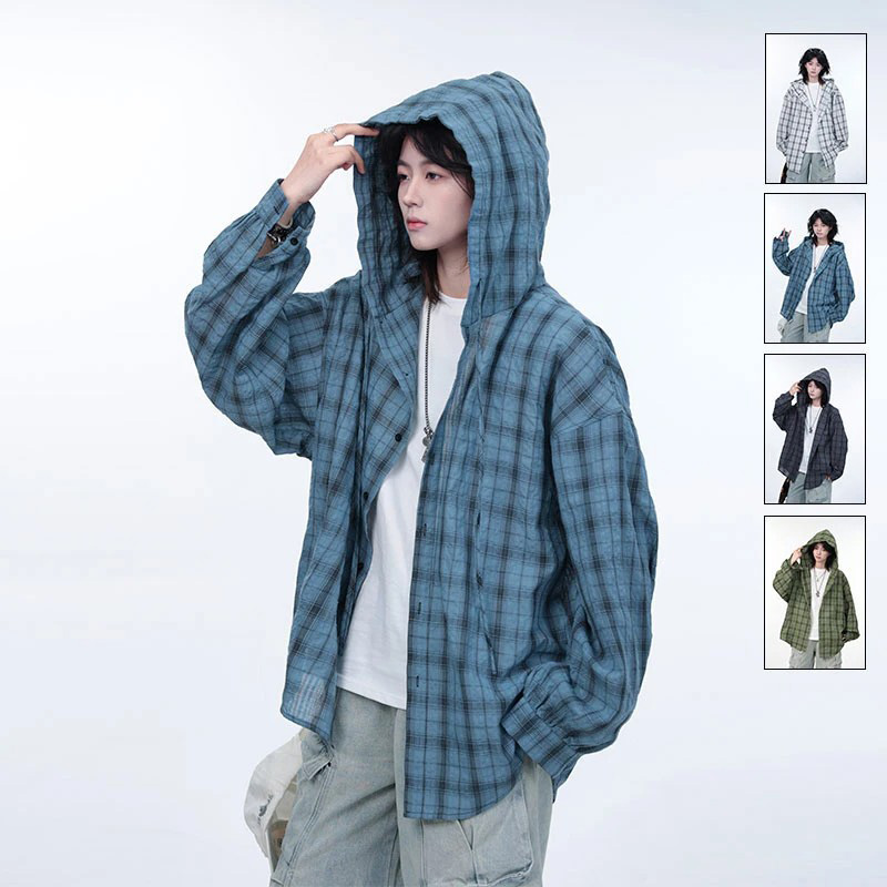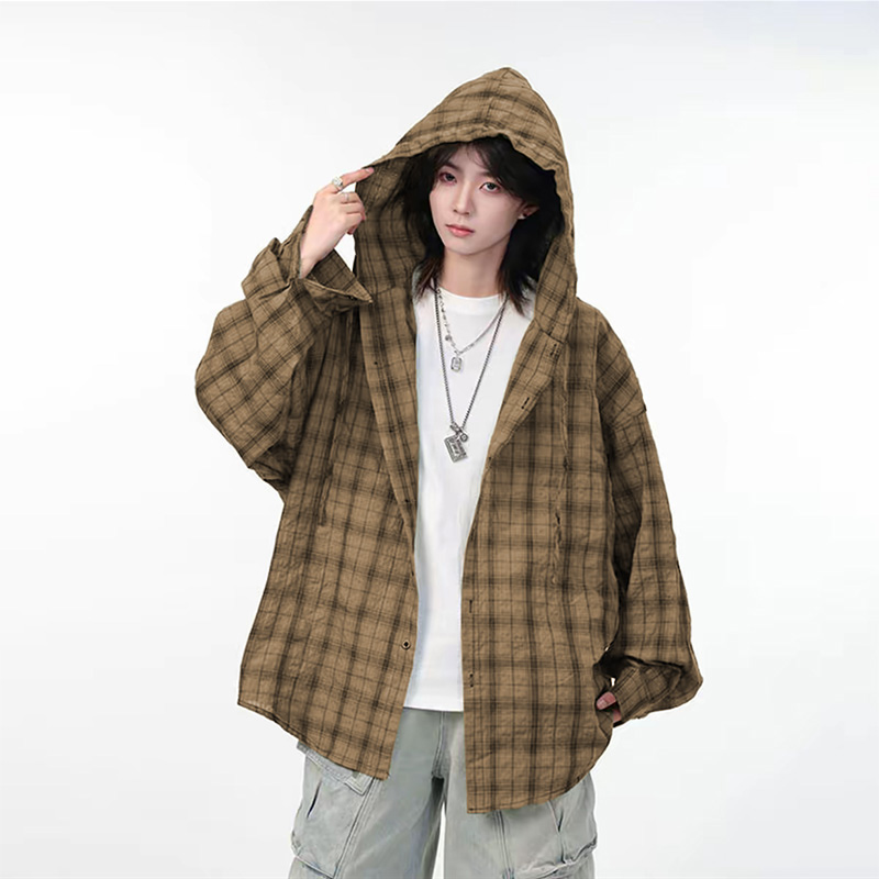 美式復古連帽格紋防曬衣 寬松版型 男女同款 輕松應對戶外出行 夏日防曬時尚必備
