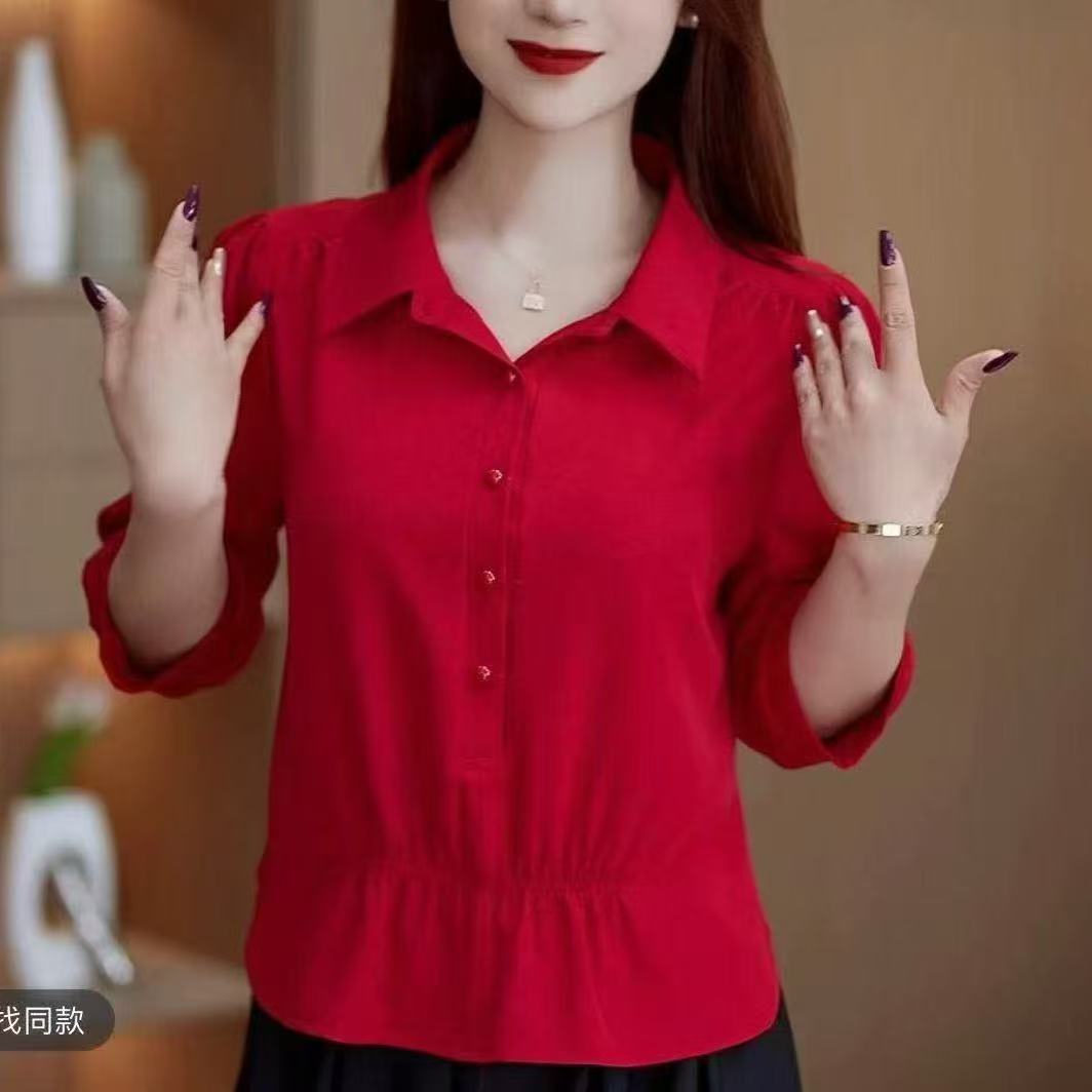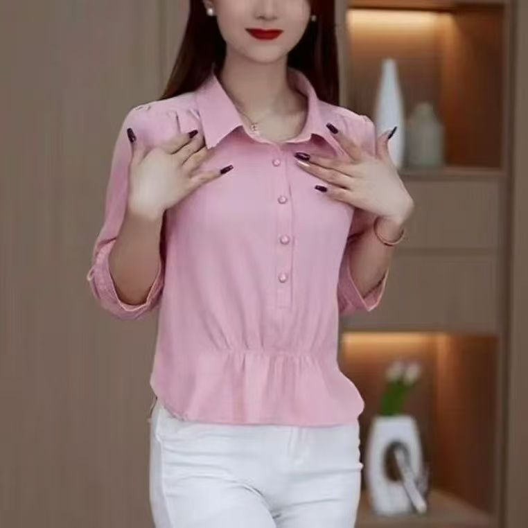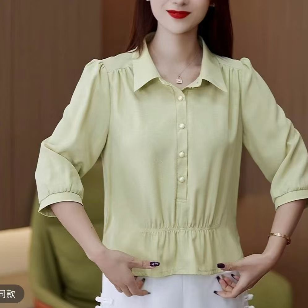時尚翻領襯衫 中袖顯瘦面料舒適 收腰藏肉 氣質爆棚 泡泡袖減齡 職場或平時穿搭必備款
