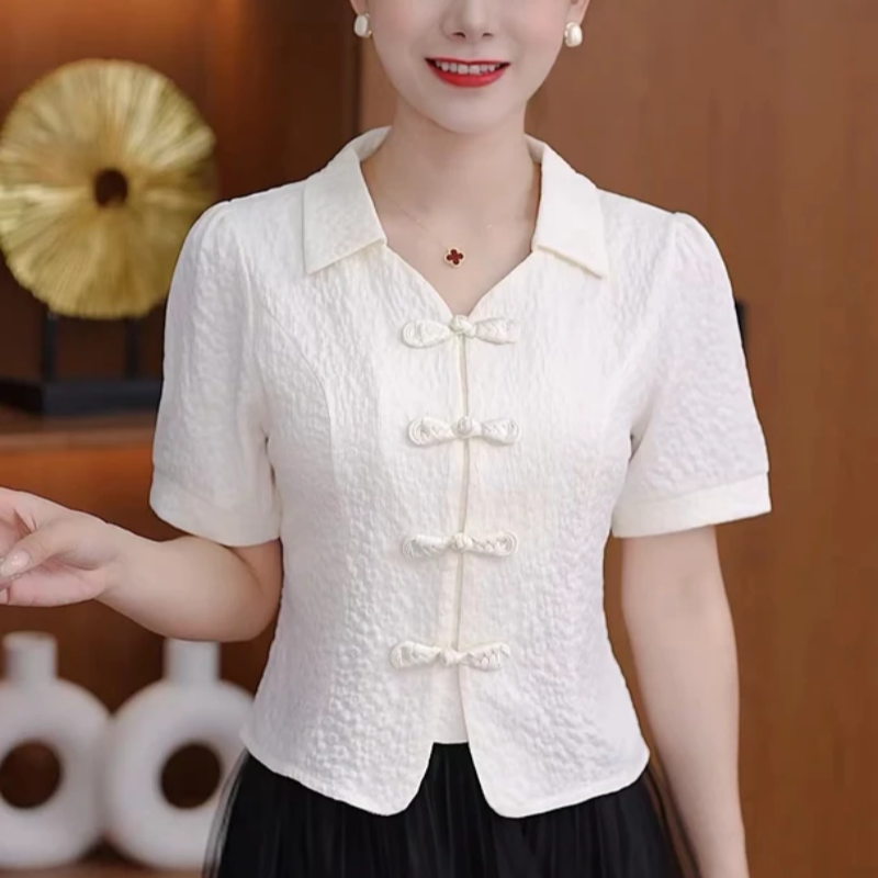 2025夏季新款法式POLO領國風盤扣上衣女甜美洋氣ins短款襯衫潮